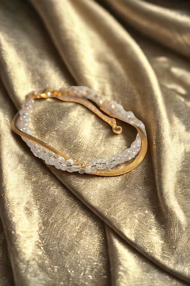 # シンプルで洗練された2連ゴールドブレスレット 当店の「2連ゴールドブレスレット」は、洗練されたゴールド装飾が魅力的なシンプルデザインのブレスレットです。普段使いから特別なシーンまで、幅広くお使いいただける一品です! ■ サイズ/スタイル - ブレスレットの長さは調整可能で、手首にぴったりとフィットします。 エレガントな2連デザインが、あなたの手元に上品な輝きを添えます。 ■ 素材/製造国 - このブレスレットは高品質なゴールドで作られており、耐久性にも優れています。 ■ お手入れ/取り扱い注意事項 - 汚れが気になる場合は、柔らかい布で優しく拭き取ることをおすすめします。 - 高温多湿な場所での保管を避けることで、長く美しい状態を保つことができます。 ■ 発送・注文に関する情報や注意事項 - ご注文後、通常3〜5日以内に発送いたします。 - 未使用品に限り返品・交換を承りますので、安心してお買い求めいただけます。 ■ その他の情報や注意事項 - ハンドメイドの特性上、微細なデザインの違いや色合いに個性がありますが、そのユニークさを楽しんでいただければ幸いです。 - さまざまなアクセサリーとコーディネートすることで、さらに魅力的なスタイルを楽しんでください! 何かご質問や不明な点がございましたら、ぜひショップのお問い合わせ窓口までお気軽にお知らせください。心を込めてお届けする特別な一品を楽しみにしております!