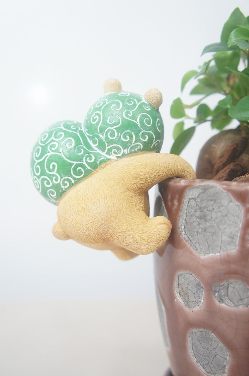「レジンダッドベア空き巣」は、かわいらしいクマの空き巣デザインが特徴のユニークな置物です!プランターに引っ掛けたり、机に引っ掛けたりして置いて頂けます。