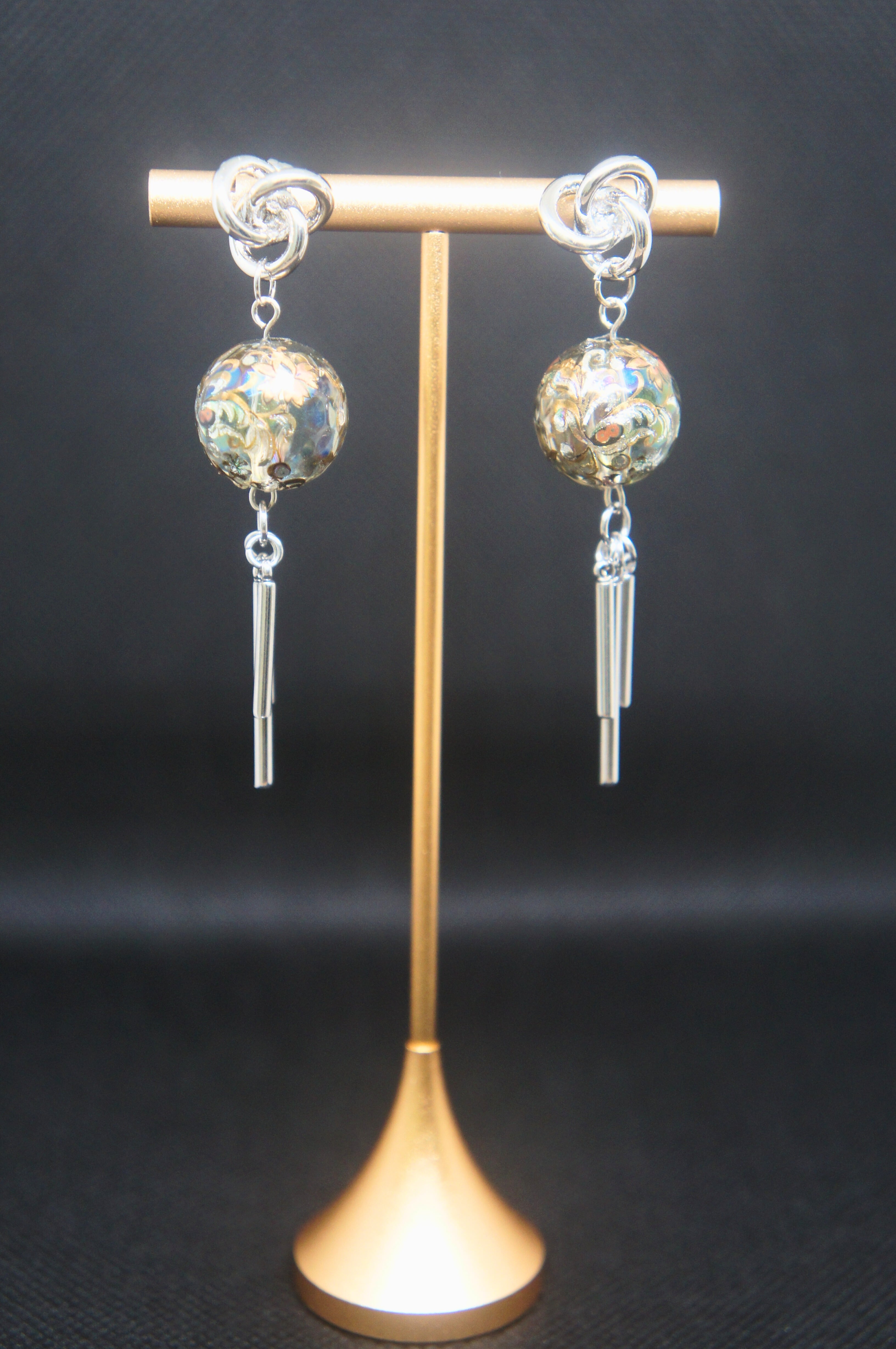 当店の「和風ボールピアス」は、和風柄の透明ボールと揺れる装飾が特徴の大人っぽくシンプルなピアスです。どんなシーンにもマッチし、あなたの耳元を美しく引き立てるアイテムです!