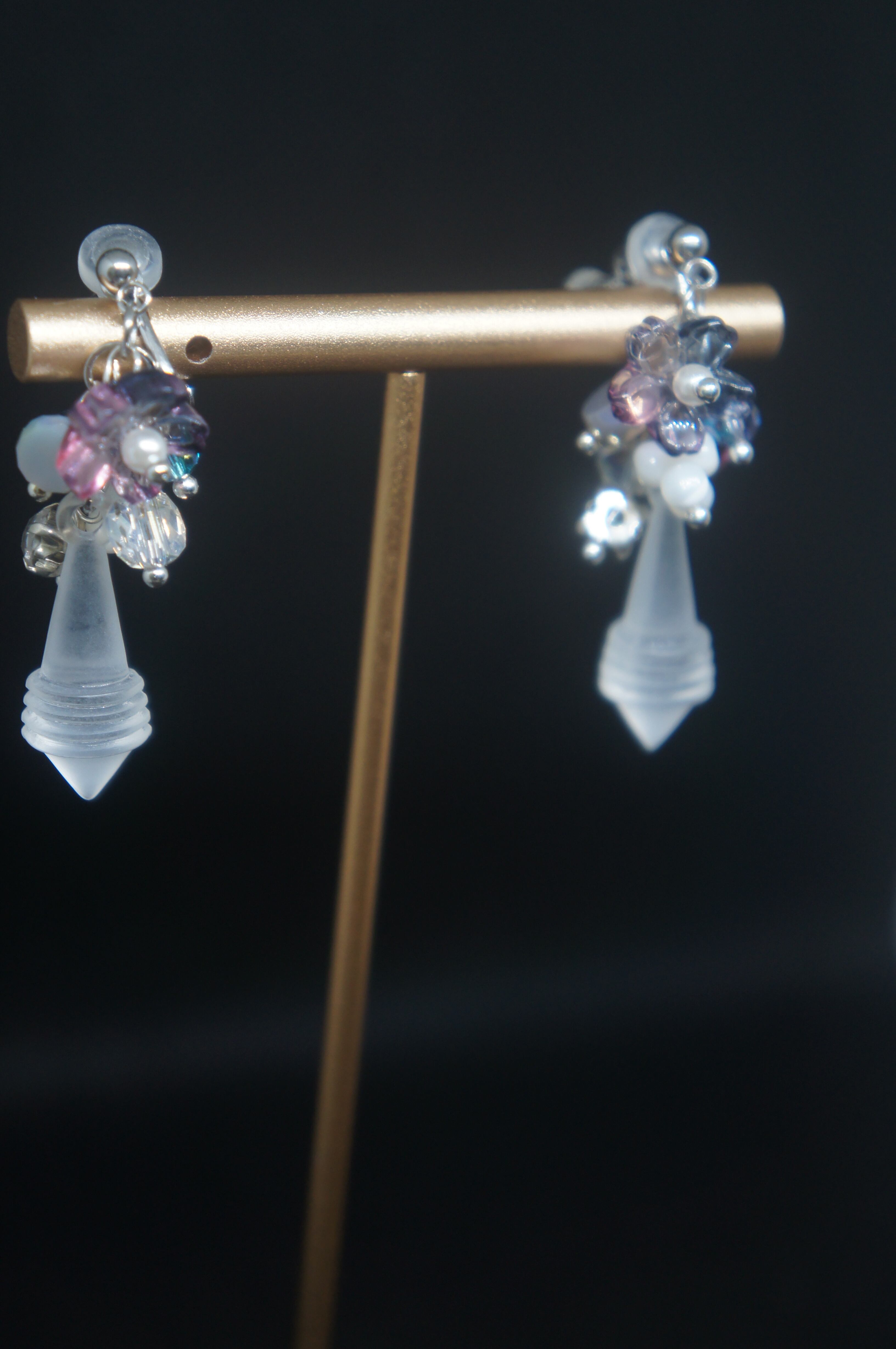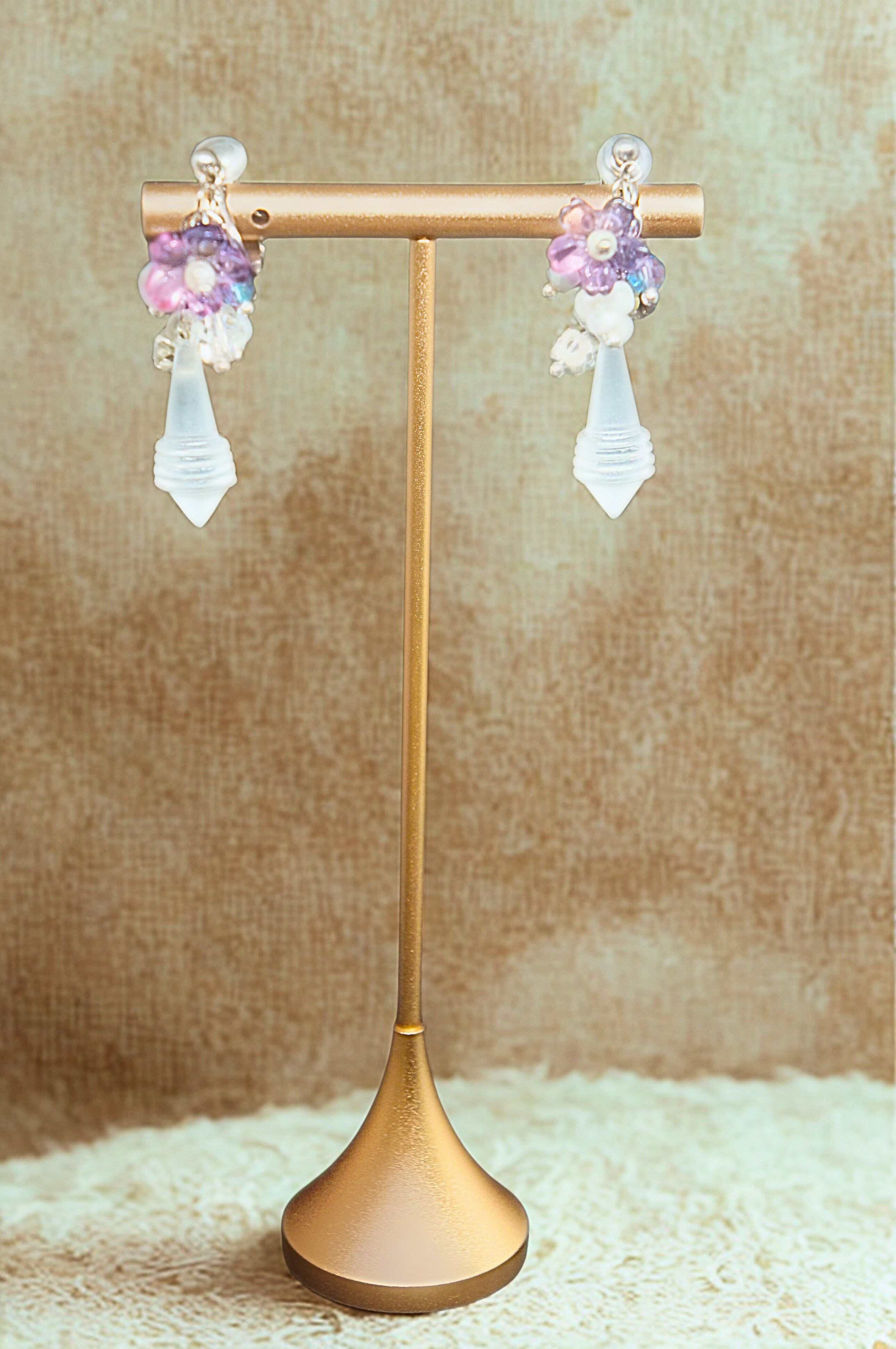 - こちらのイヤリングは丁寧にハンドメイドされており、クリアフラワーの一つ一つがユニークな魅力を持っています。